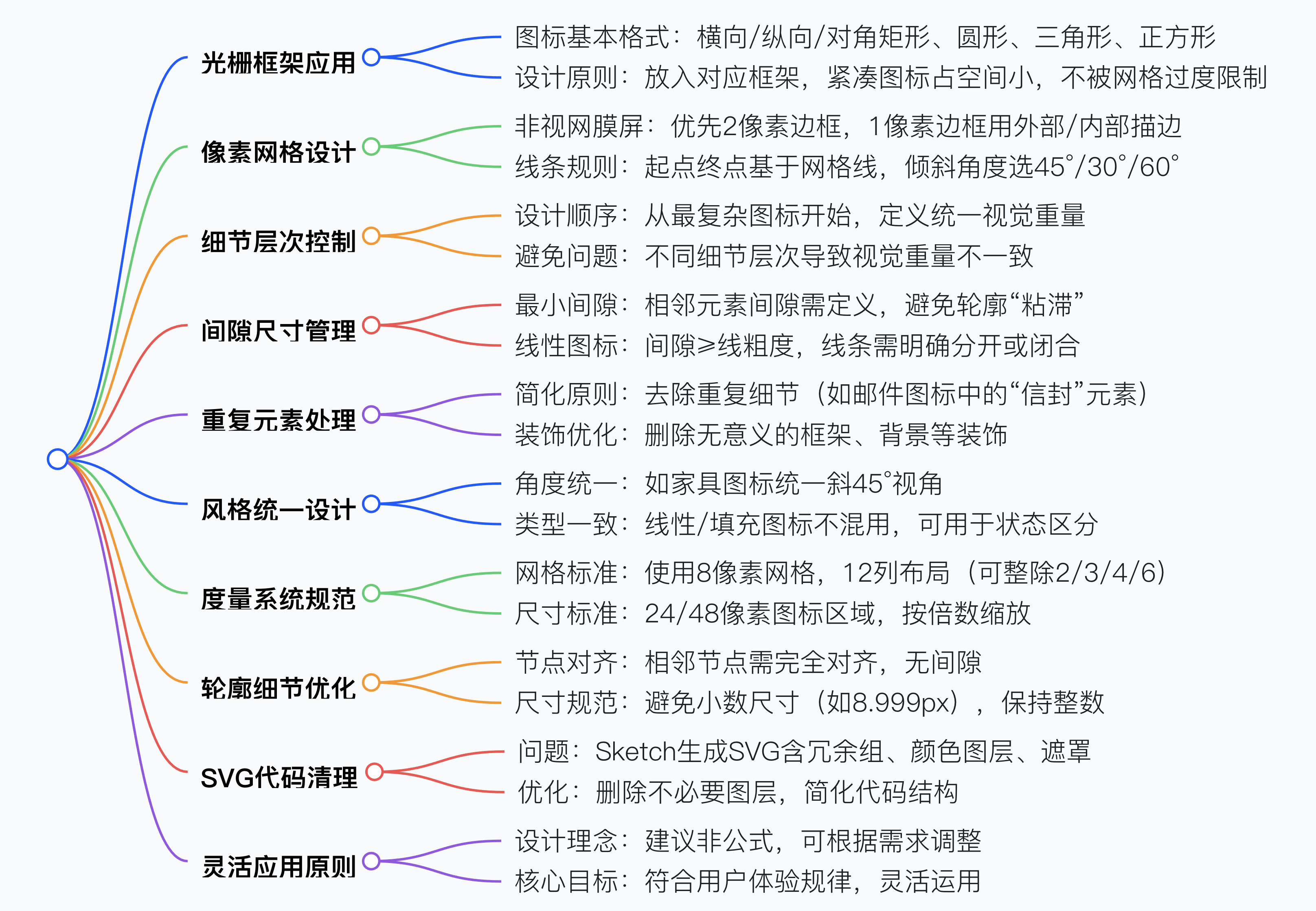 UI 界面圖標(biāo)設(shè)計的 10 個關(guān)鍵細(xì)節(jié):使用光柵框架確保圖標(biāo)視覺重量一致,設(shè)計時注意像素網(wǎng)格重要性、優(yōu)先 2 像素邊框,從最復(fù)雜圖標(biāo)開始設(shè)計以保持細(xì)節(jié)層次統(tǒng)一,控制相鄰元素最小間隙、避免輪廓 “粘滯”,去除重復(fù)圖形元素以簡化設(shè)計,保持圖標(biāo)風(fēng)格(如角度、線性 / 填充)一致,基于 8 像素網(wǎng)格等二倍數(shù)度量系統(tǒng)設(shè)計,確保輪廓節(jié)點對齊、尺寸為整數(shù),清理 SVG 代碼中的冗余圖層,同時強(qiáng)調(diào)這些建議需靈活應(yīng)用而非刻板遵循。