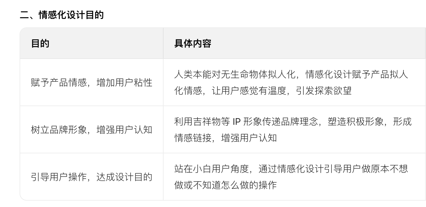 - 答案:本能層次即視覺層次的情感化設(shè)計(jì),主要從三個(gè)方面實(shí)現(xiàn)。一是獨(dú)特的 IP 形象設(shè)計(jì),利用高識(shí)別度 IP 形象拉近用戶與產(chǎn)品關(guān)系,打造品牌效應(yīng);二是風(fēng)格明確的規(guī)范化設(shè)計(jì),使界面整潔有品質(zhì)感,讓用戶產(chǎn)生舒適情感;三是有趣的擬人化動(dòng)作設(shè)計(jì),通過產(chǎn)品擬人化互動(dòng)反饋,讓用戶感到有趣。