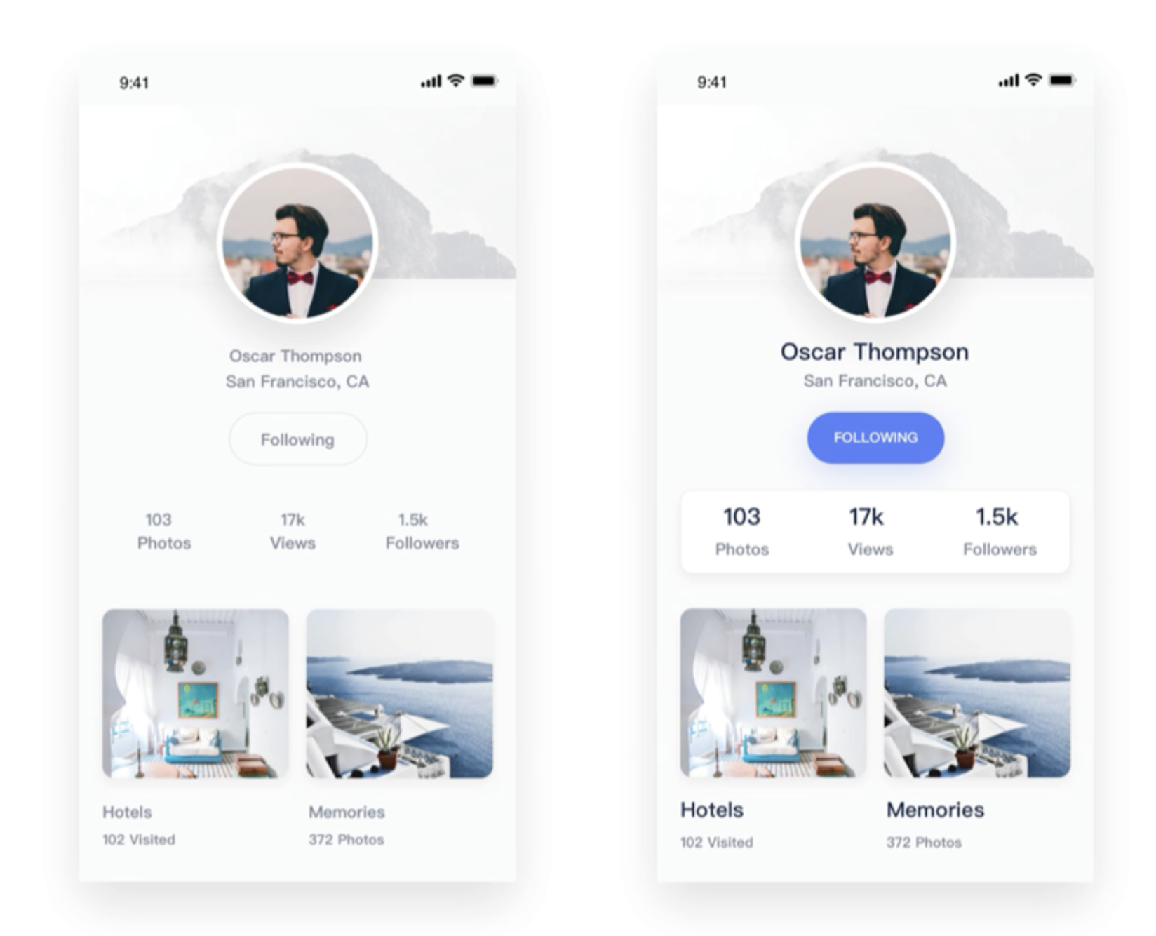 - 連續(xù)性:視覺偏向感知連續(xù)形式,元素共享明確界限區(qū)域則分一組,設(shè)計(jì)中常用卡片式組合相關(guān)元素。