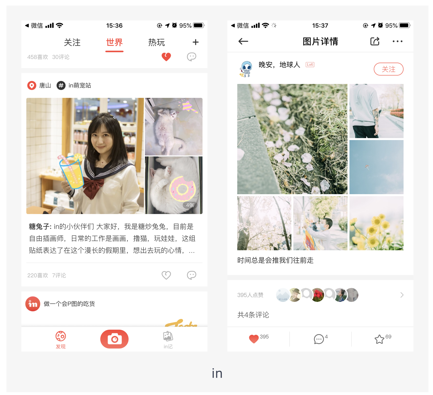 這種布局方式是將幾張圖片拼成一個(gè)矩形,樣式新穎類似雜志的排版,對(duì)圖片質(zhì)量要求較高,多應(yīng)用在圖片社交中,如 in。通過(guò)獨(dú)特的拼圖方式,能讓圖片展示更具創(chuàng)意和吸引力,增強(qiáng)用戶的視覺(jué)體驗(yàn)。