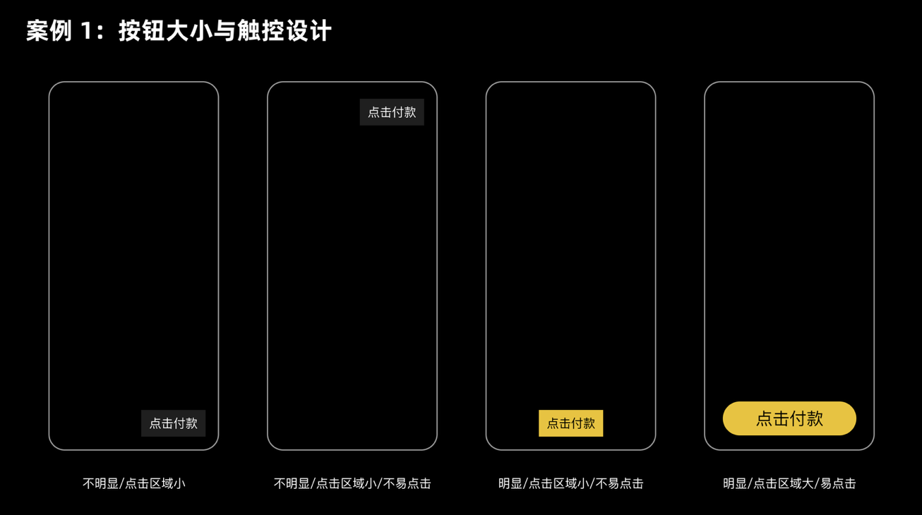 比如支付頁面的 “確認付款” 按鈕,幾乎所有 APP 都會把它設計成頁面中最大、最醒目的元素,不僅尺寸足夠,還會放在拇指容易觸及的區(qū)域(如手機下半屏)。這樣一來,用戶無需猶豫就能快速點擊,既減少誤操作風險,也間接提升了支付轉(zhuǎn)化率。