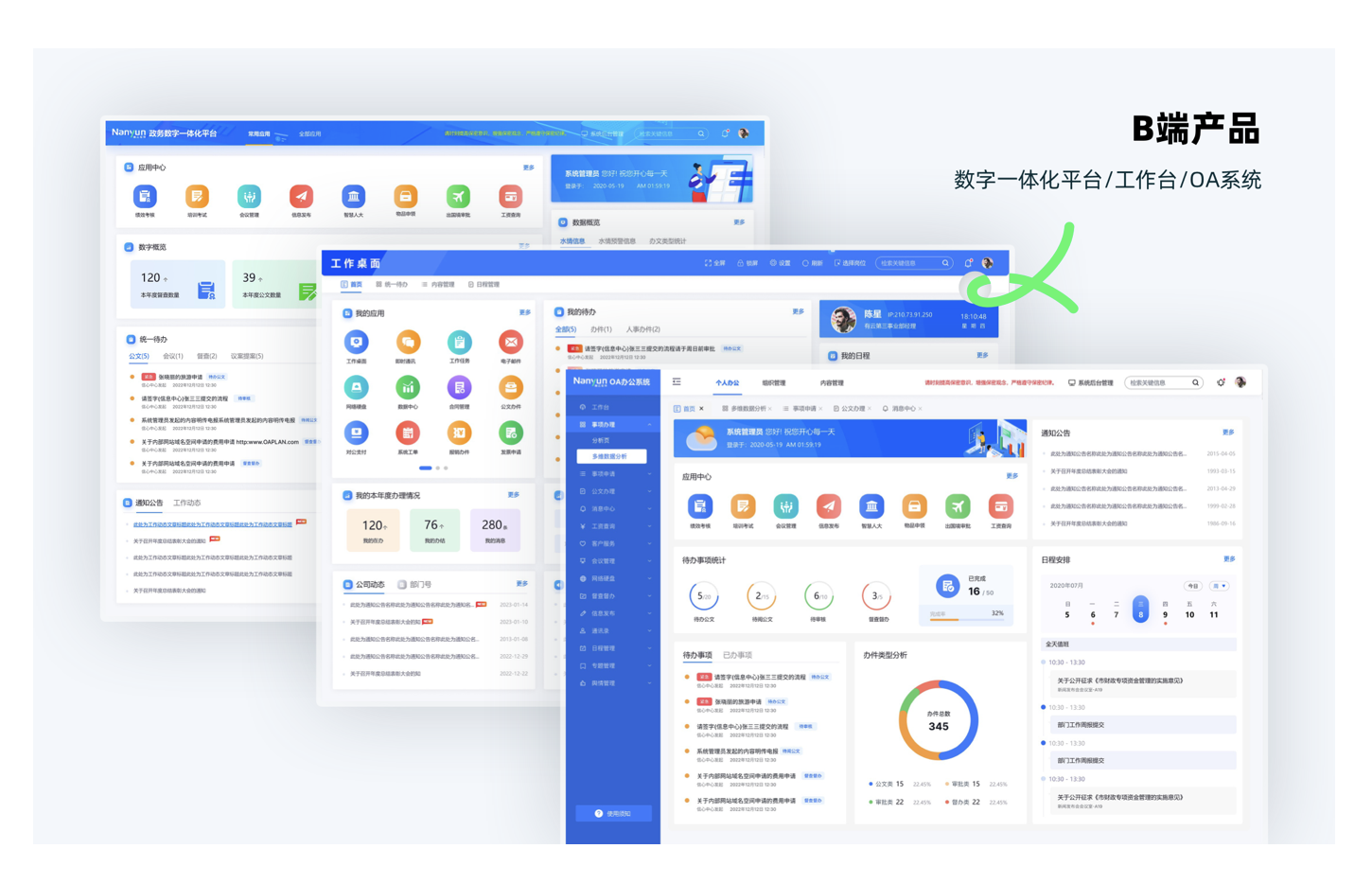 - B 端 UI 設計:全稱 “To Business”,服務于企業(yè)或組織用戶,核心是滿足商業(yè)流程需求。比如 OA 辦公系統(tǒng)、財務軟件、數(shù)據(jù)監(jiān)管平臺等,設計目標是幫企業(yè)優(yōu)化流程、降低成本、提升生產(chǎn)力。