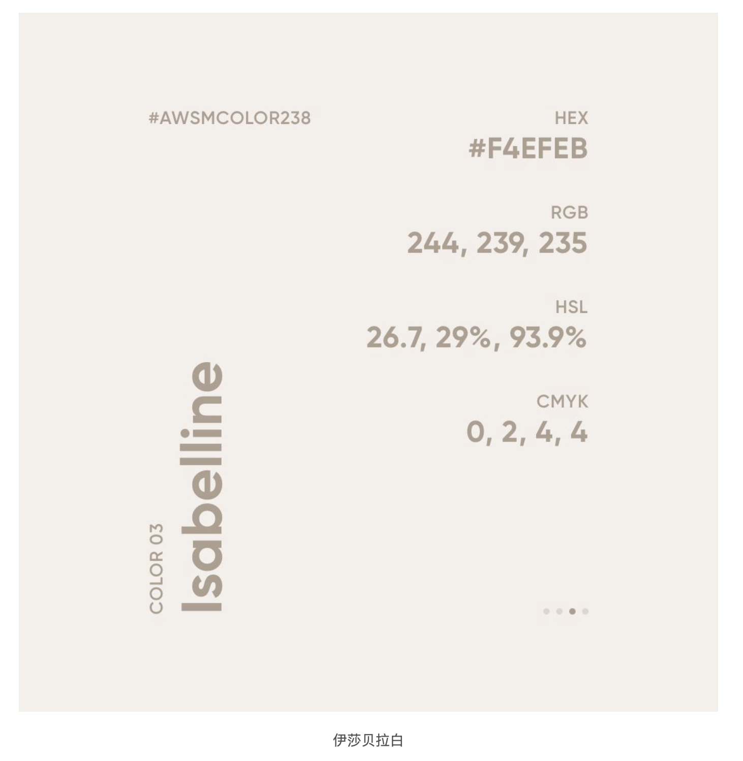 色值 #F4EFEB 的伊莎貝拉白,是介于灰白與淺米色之間的暖調(diào)白色,低飽和度的特質(zhì)讓它自帶一種歲月沉淀的溫潤(rùn)感。這種顏色的名字源于一個(gè)充滿獵奇色彩的傳說(shuō):17 世紀(jì)初,哈布斯堡王朝的伊莎貝拉公主為等待出征的丈夫凱旋,發(fā)誓三年內(nèi)不換洗內(nèi)衣,最終衣物形成的色調(diào)被稱為 “伊莎貝拉白”。