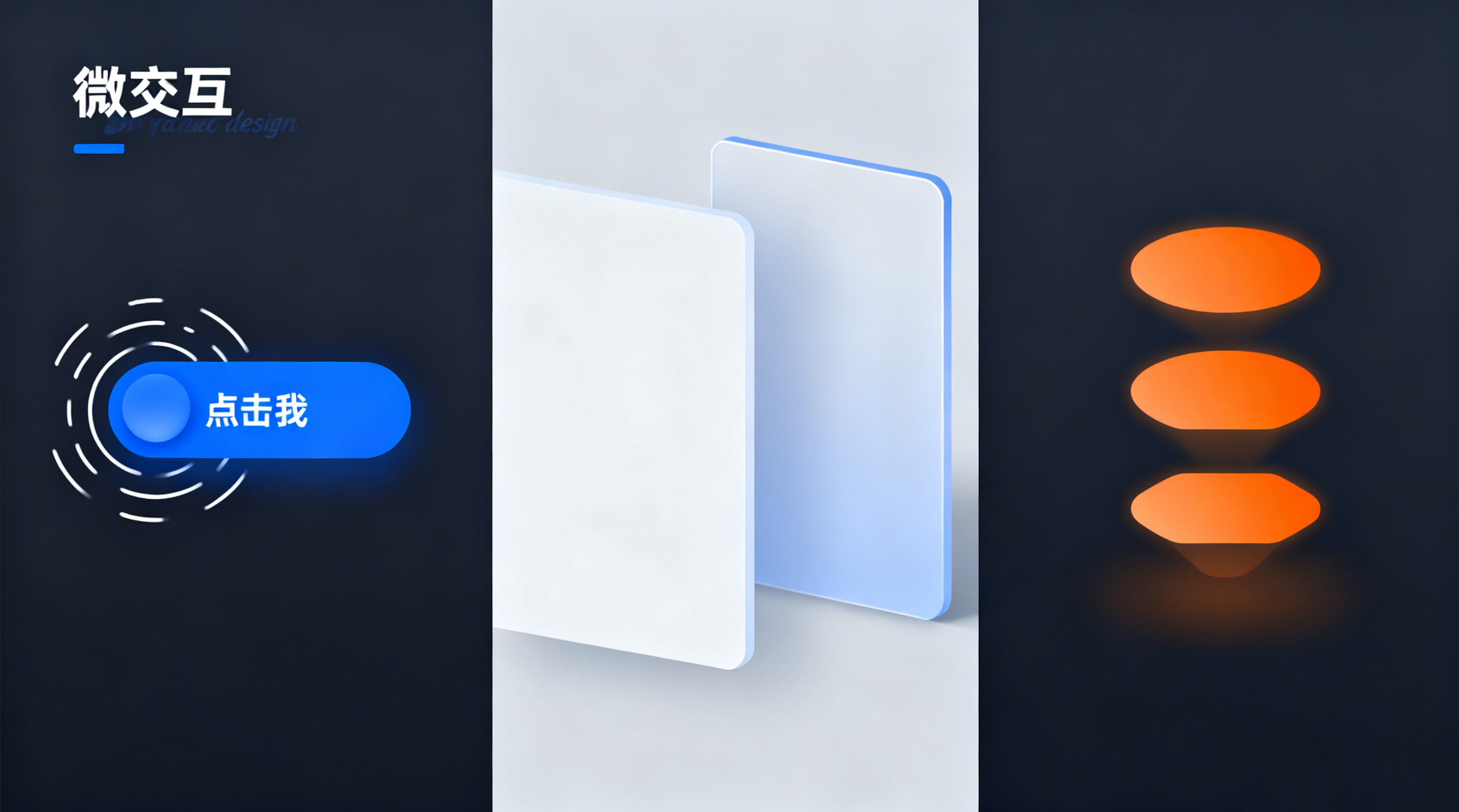 (注:圖中展示了按鈕點(diǎn)擊、頁面切換、數(shù)據(jù)加載三種常見場景的微交互設(shè)計(jì)效果)