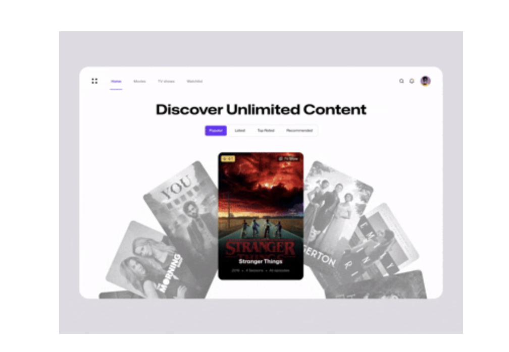 - 定義:借鑒現(xiàn)實(shí)中撲克牌的翻頁(yè)、堆疊邏輯,內(nèi)容卡片以層疊或并列形式呈現(xiàn),切換時(shí)帶有滑動(dòng)、翻轉(zhuǎn)等物理動(dòng)效,讓用戶直觀感知 “內(nèi)容切換” 的動(dòng)作。