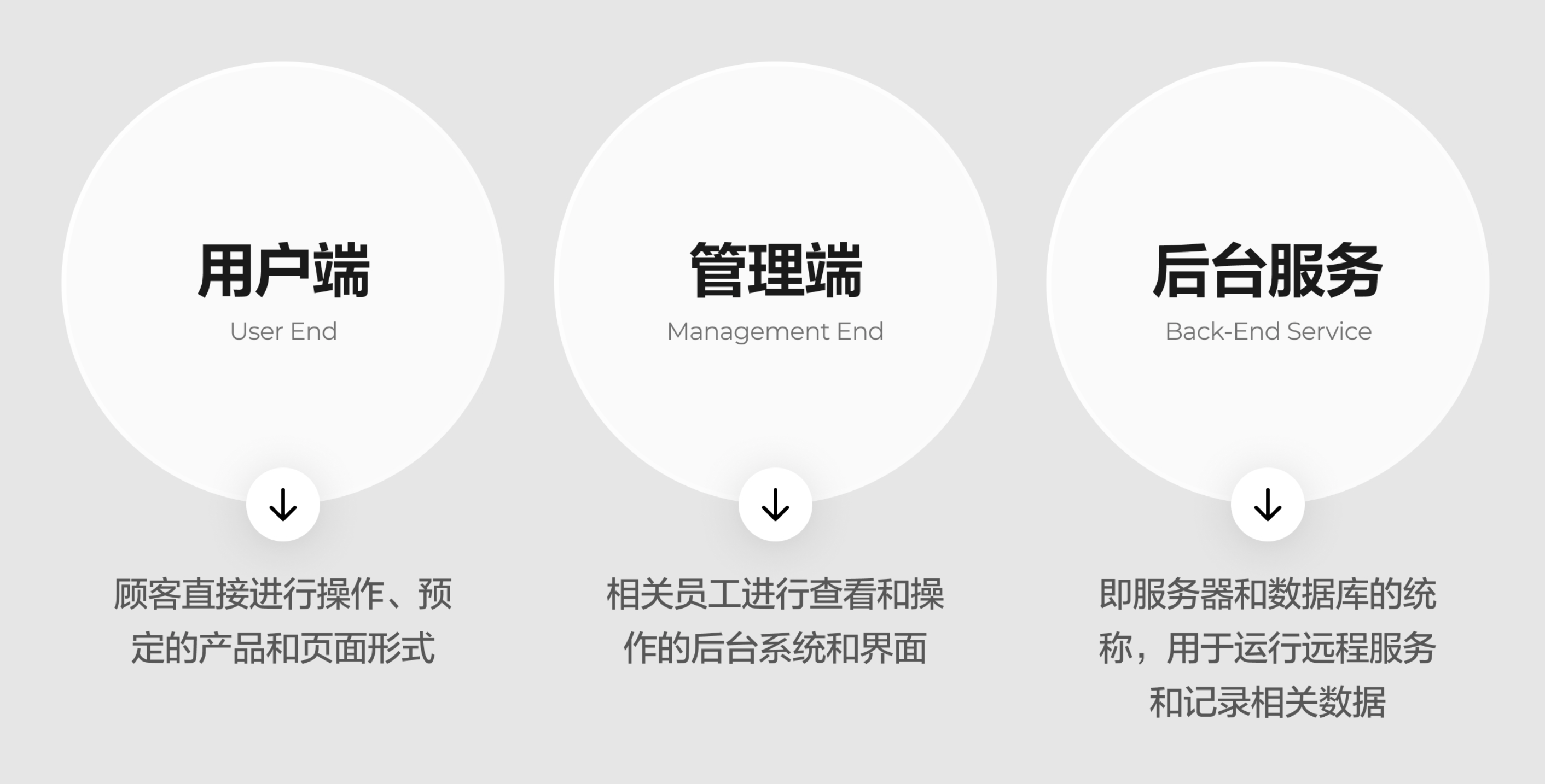 根據(jù)上面對不同端的分析和構(gòu)想,就可以創(chuàng)建產(chǎn)品的 —— 功能架構(gòu)圖,比如下面這個(gè)極簡的版本: