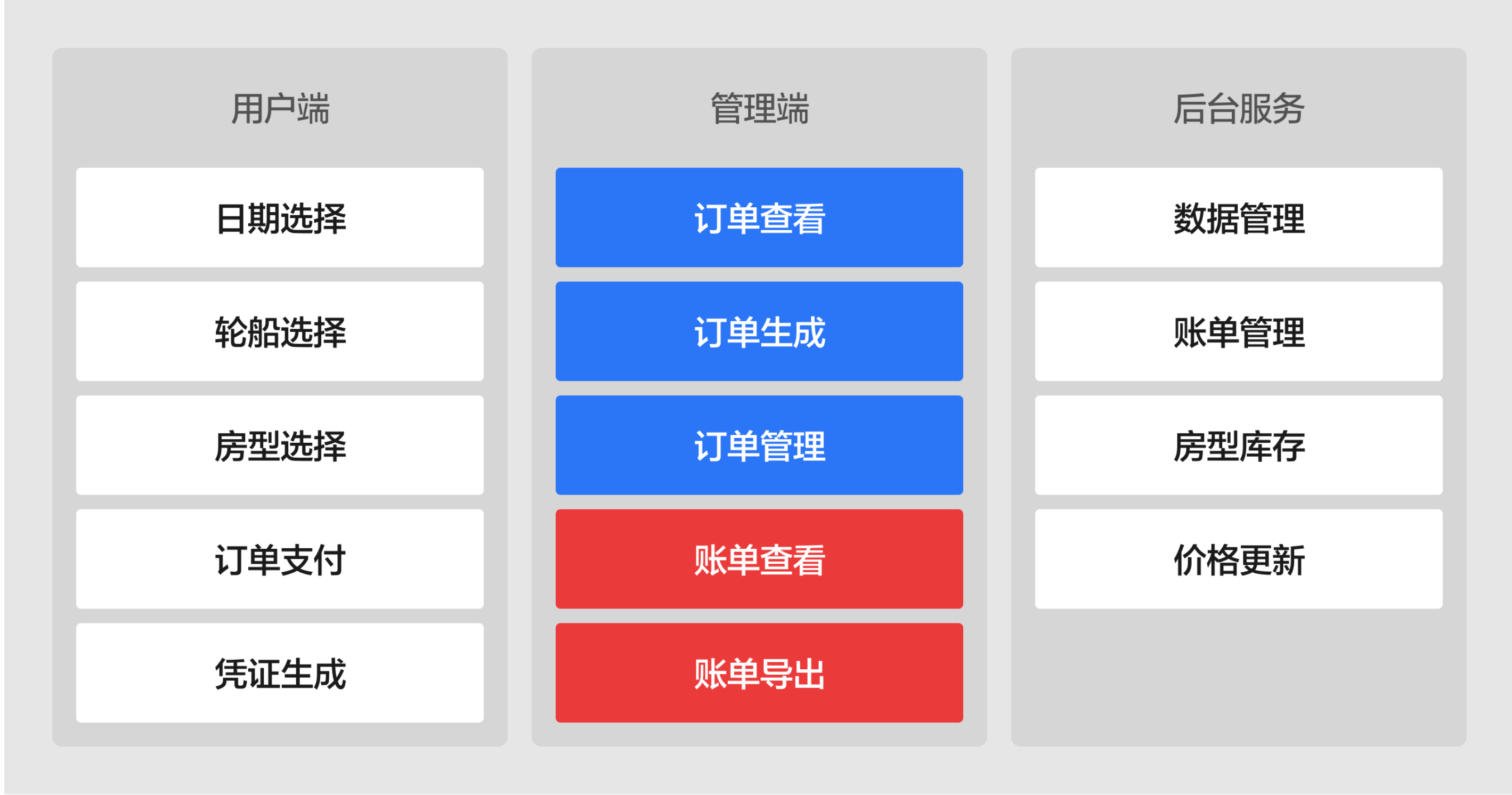 用戶端就是普通的網(wǎng)頁預(yù)定模式(這里不討論APP和小程序等),讓用戶直接選擇日期、船型、房型后支付獲取憑證,非常容易理解,不用多做介紹,我們重點(diǎn)放在管理端和后臺(tái)服務(wù)的解釋上。
