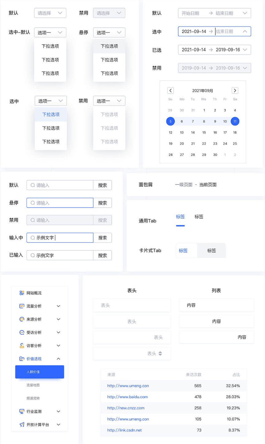 組件庫是將設(shè)計(jì)好的UI元素進(jìn)行統(tǒng)一整理的地方,因?yàn)锽端不同B端界面中有大量重復(fù)應(yīng)用的設(shè)計(jì)元素,所以我們會(huì)這些元素進(jìn)行匯總,存放到固定的位置方便后面復(fù)用,而不用每次都重新設(shè)計(jì)一遍。