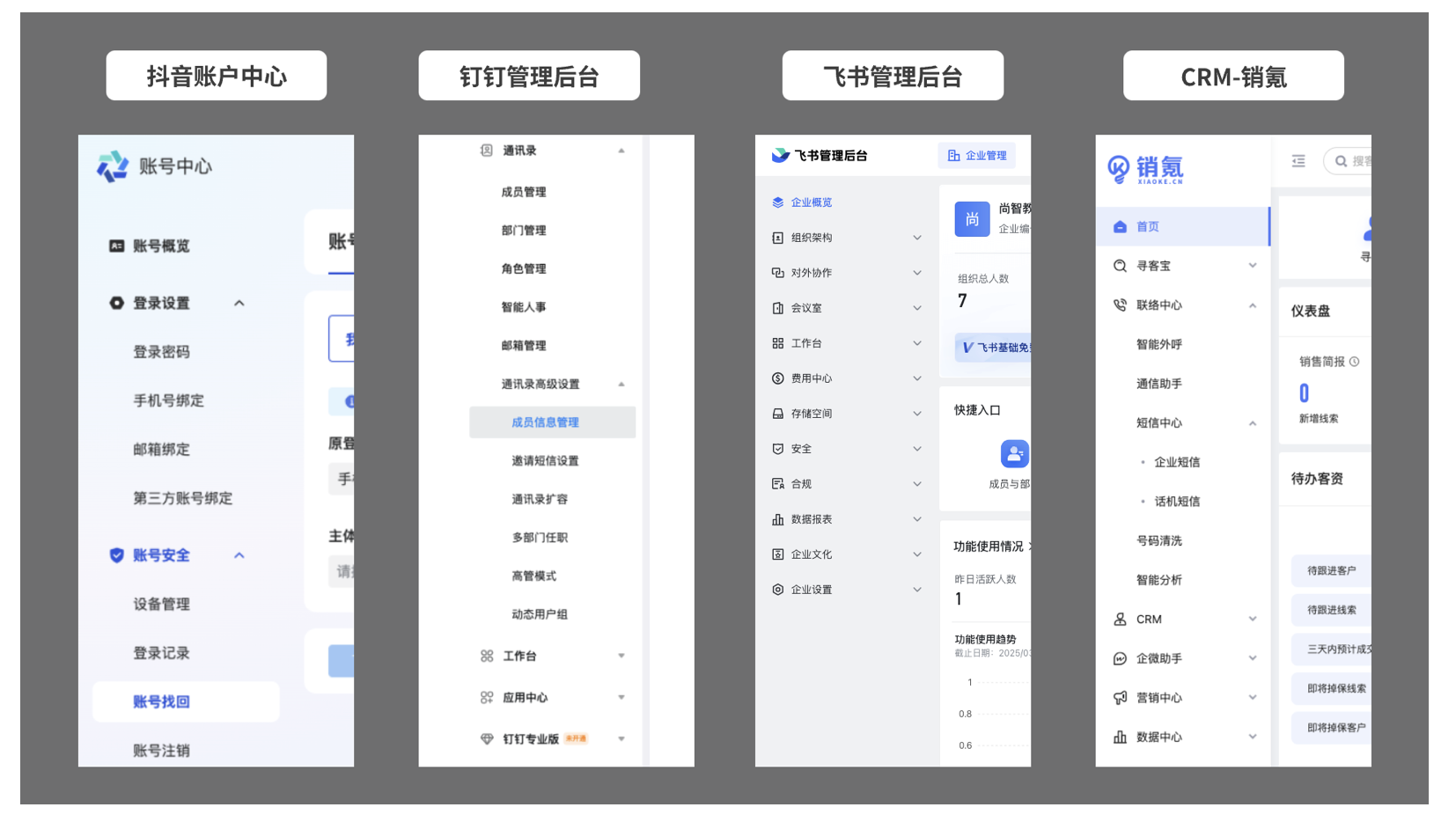 典型案例:淘寶商家中心、企微后臺、有贊微商城管理后臺。