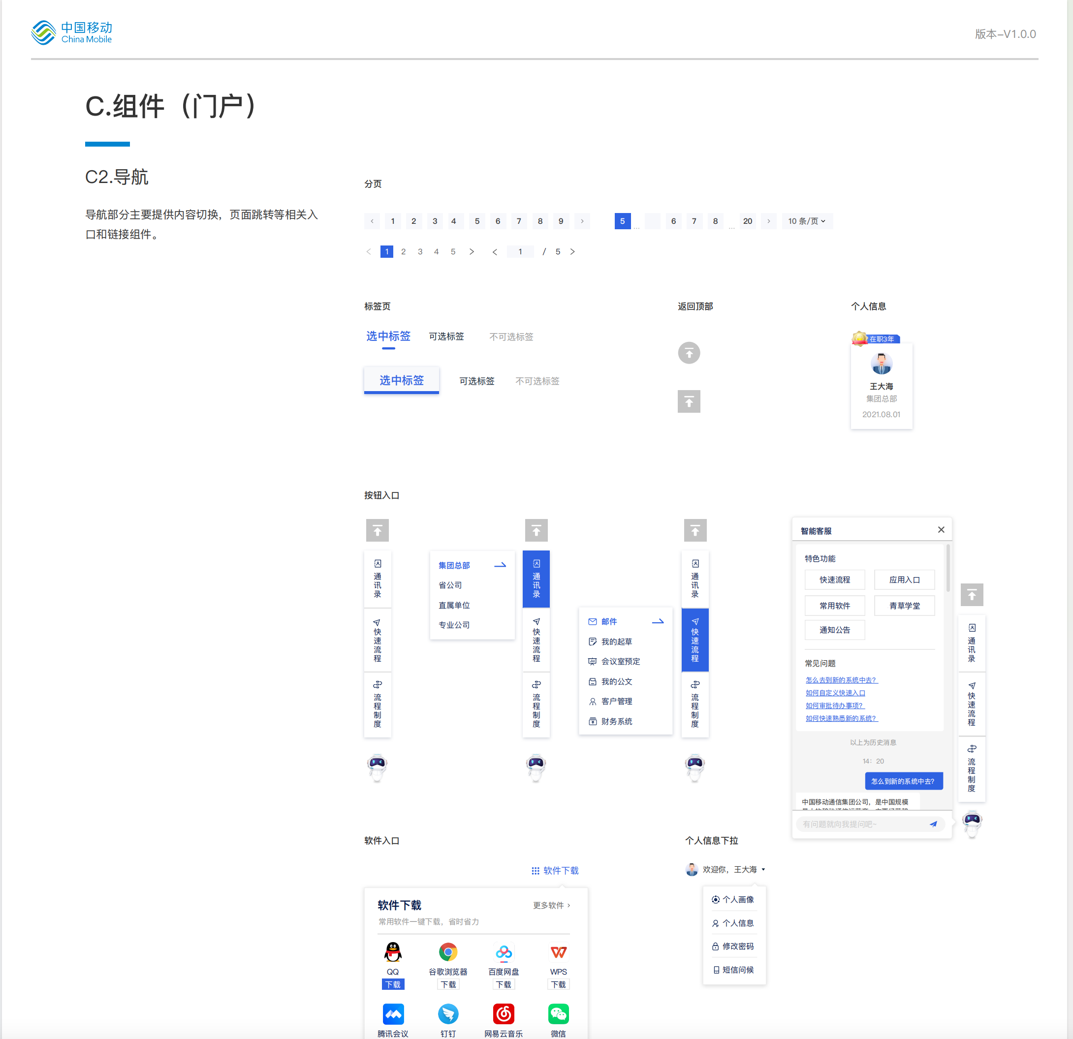 以下是藍(lán)藍(lán)設(shè)計(jì)(北京蘭亭妙微)給中國移動(dòng)研究院設(shè)計(jì)三套軟件,制作的部分UI規(guī)范。