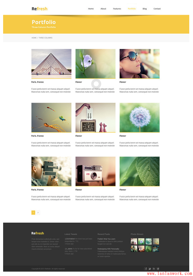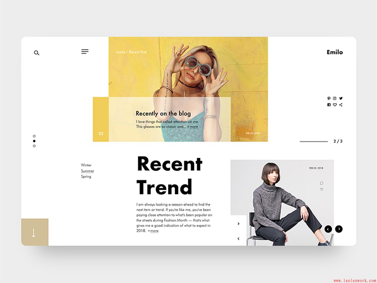 這個(gè)博客頁面分別用黃色和灰色做背景,形成對比,又互相襯托,同時(shí)有所側(cè)重。白色半透明色塊鋪在黃色背景上,對主題進(jìn)行描述,也形成一種顏色深淺明暗的對比。