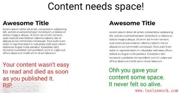 要給內(nèi)容足夠的呼吸空間。在頁(yè)面發(fā)布之前,請(qǐng)確保在不同的設(shè)備上測(cè)試留白,以確保可讀性。