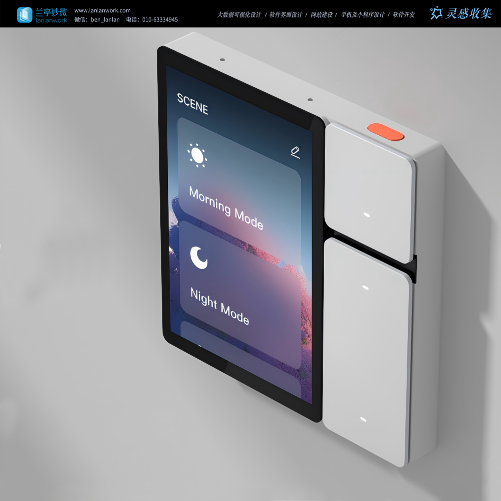 1. 異形面板 + 裝飾化界面(如時(shí)鐘 / 溫度嵌入);2. 啞光涂層 + 同色系配色,弱化設(shè)備感;3. 場(chǎng)景模式替代多按鍵,操作元素少